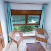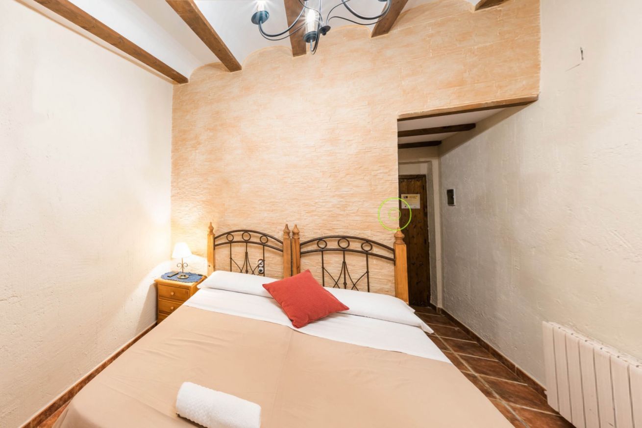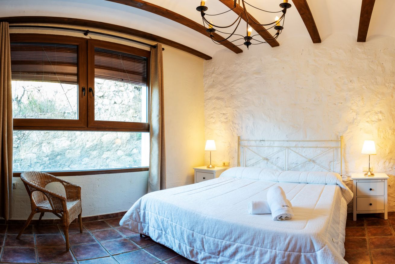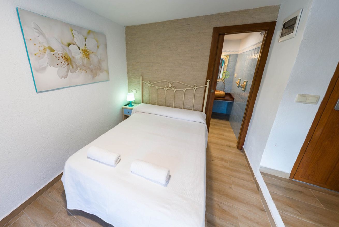 Habitación doble, con cama de matrimonio y baño propio, con vistas a la terraza.